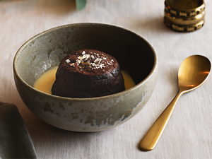 Simon Rogan Dark Chocolate Fondant with Mandarin Custard
